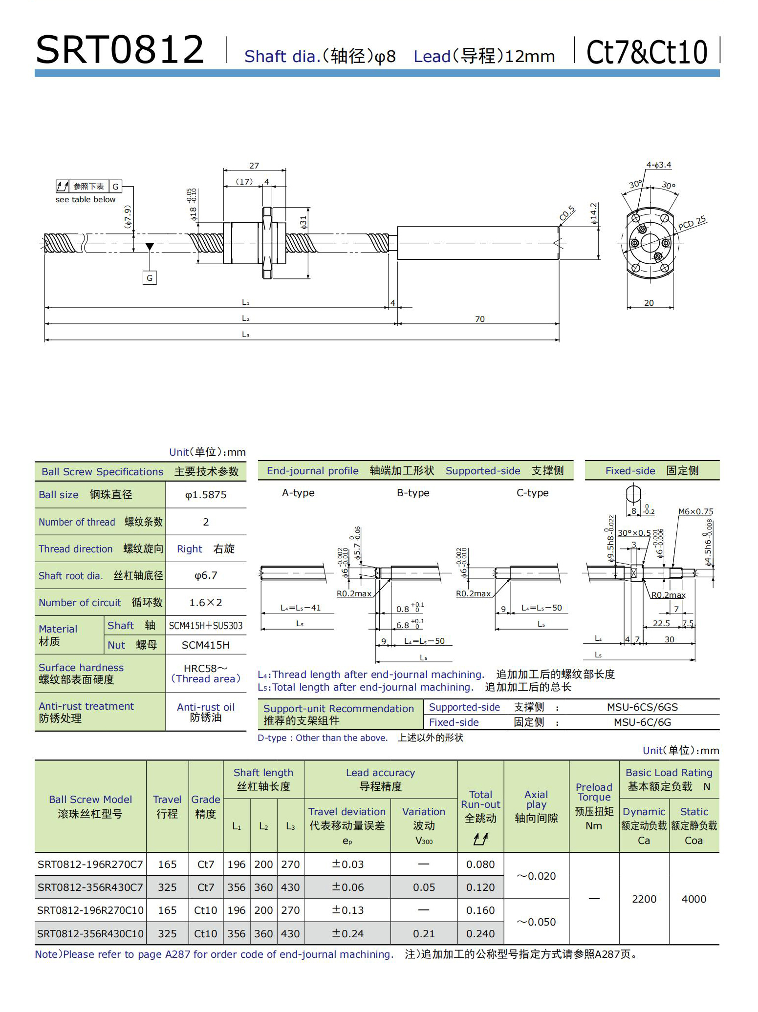 日本KSS进口台阶型大头冷轧滚珠丝杆